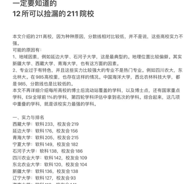 2025低分捡漏的211学校有延边大学、石河子大学、西藏大学、新疆大学、宁夏大学、北京中医药大学、辽宁大学、贵州大学、海南大学等,这些都是值得分数不高值得报考的报考的211高校。