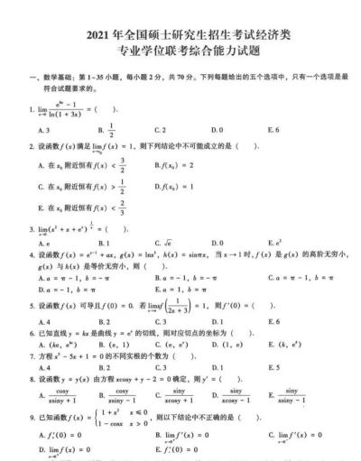396经济联考包括数学基础、逻辑和作文。数学部分:微积分(一元函数的微分、积分,多元函数的一阶偏导数,函数的单调性和极值);分布和分布函数的概念,常见分布,期望值和方差;线性代数部分(线性方程组,向量的线性相关和线性无关,矩阵的基本运算)。
