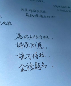 二、十年攻书寒苦,今宵征冲天路;回眸从前付出,泼墨卷袖书;恭祝,恭祝,此战青云平步。祝高考金榜题名。