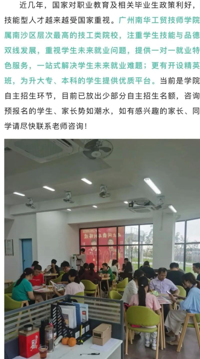 不要因为一个小小的失误,而浪费掉你找学校的时间,一定要去了解学校的招生要求,确认你满足学校的招生要求,再继续了解学校信息,若是你不满足学校的招生要求,就没有继续了解学校的必要了,同学们若是对广州南华工贸高级技工学校感兴趣,想了解更多学校信息,可以关注找校通网,了解更多学校信息。