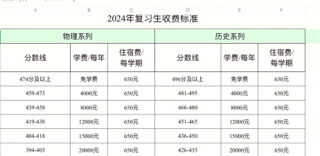 冀州中学复读生报名的理科复习收费标准如下:520--534分1000元。510--519分2000元。500--509分3000元。495--499分3500元。文史复习收费标准如下:510--523分1000元。如果复读收费标准变动,以冀州中学官方公布的复读生收费为准。
