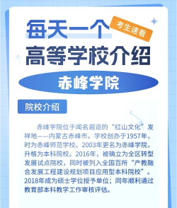 赤峰学院位于闻名遐迩的“红山文化”发祥地——内蒙古赤峰市。赤峰学院创办于1957年,时为赤峰师范学校。2003年更名为赤峰学院,升格为本科院校。2018年成为硕士学位授予单位;同年顺利通过教育部本科教学工作审核评估。