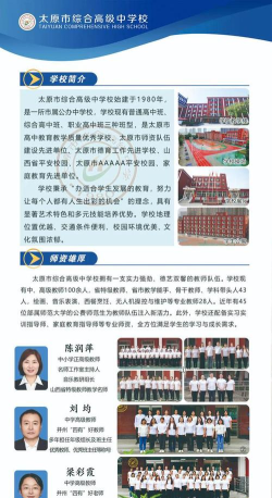 太原市综合高级中学是由太原市人民政府批准的全省唯一的公办综合高中(有普通高中和职业高中双重性质),是太原市教育局的直属学校。占地面积27余亩,现有教职工130人,其中高级教师23人,省、市学科带头人18人,市骨干教师26人,在校学生1500余人。