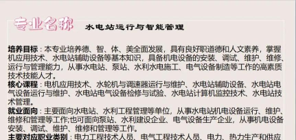 水电站运行与管理专业就业前景主要在水电站、水利工程管理、水利建设企业、电气设备生产企业等单位从事水电站机电设备运行、维护、维修和管理、机电设备安装、调试、维护等工作。