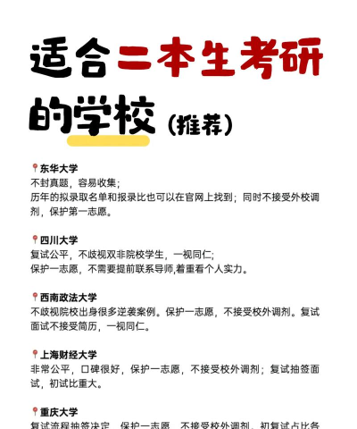 一般二本建议考研学校有东北林业大学、西南大学、南昌大学、太原理工大学、河北工业大学、华南师范大学、福州大学、贵州大学等等。具体选择还需根据自身情况和发展目标来考虑。