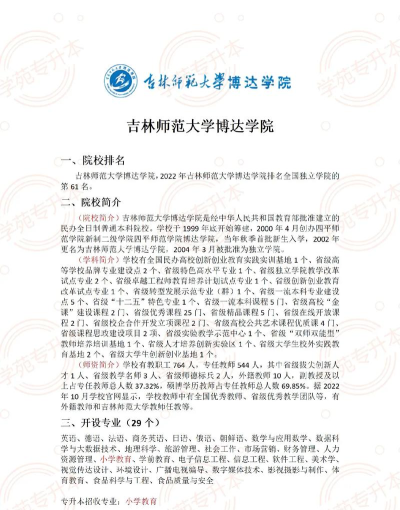 1、吉林师范大学博达学院不错,开设的专业广泛众多?校内外活动丰富精彩?提供了良好的学习环境 大学四年都很开心,遇到一帮朋友。