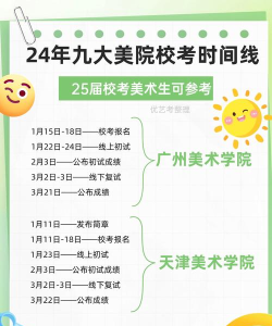 2024年各大美术院校校考时间预计在一月份。部分院校在2月3月举行。具体考试时间公布之后,可在各大院校官网进行查看。