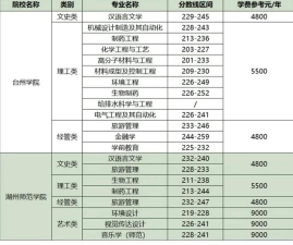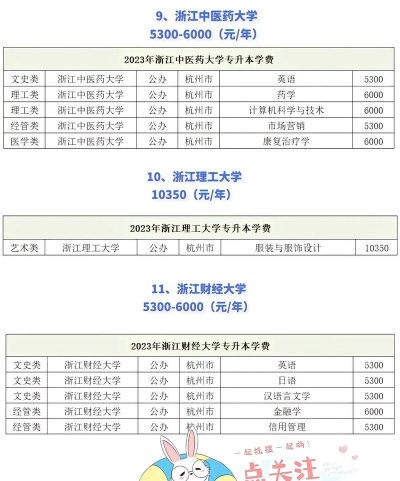 杭州电子科技大学、杭州师范大学、浙江理工大学、浙江农林大学、浙江中医药大学、浙江工商大学、中国计量大学、浙江财经大学、温州医科大学、浙江海洋大学、温州大学。