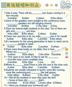 2. 不定代词another是由an和other构成,由此可以判定它只能代替或修饰可数的单数名词,前面不再用冠词。可以在句中作主语、宾语、表语和定语。