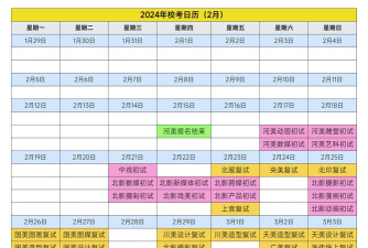 从《中国美术学院2023-2024学年教学校历》的时间安排上来看,学校在1月中旬开始举行期末教学检查,在1月底到二月中这段时间放寒假,紧接着的就是本科专业招生考试时间安排,这个时间出现在2024年二月中旬,具体时间段为2月份的第三周,而且从安排表上来看,该周的前三天和后两天均为休息状态,唯有周四、周五两天为工作时间状态,是否意味着中国美术学院校考时间具体安排为2024年2月15-16日,这个时间点为春节过后的正月初六、初七两天。