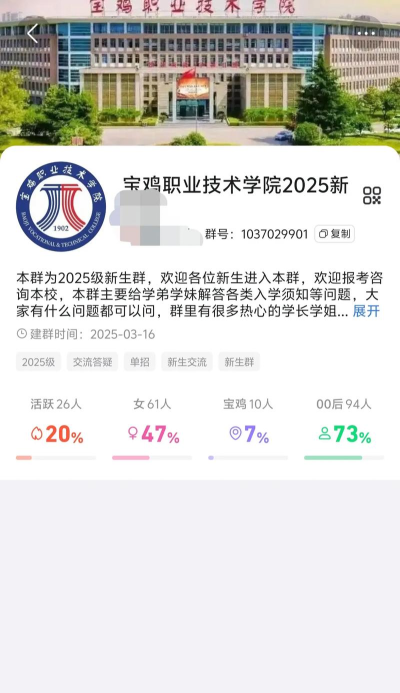 宝鸡职业技术学院是经陕西省人民政府批准,教育部备案的一所公办全日制普通高等职业院校,成立于2003年4月,现为省级示范性高职院校、省级文明校园、省级平安校园、省级园林式单位、省级智慧校园示范校、全省普通高校心理健康教育与咨询示范中心、国家乡村振兴人才培养优质校,位于宝鸡市国家高新技术产业开发区东区,校区占地2300余亩,总建筑面积73.83万平方米。