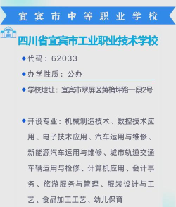 宜宾市职业高中设置了多种专业,包括会计、电子商务、机电一体化、计算机应用、汽车技术等多个领域。