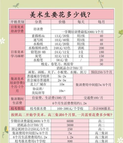 高三年级美术花费比较多,因为有大半年时间集训,饭费、住宿费、学费、画材费用大约五万到六万,期间还要参加各院校考试,需要报名费和交通费。