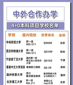国际本科4+0有哪些院校:上海大学、北京理工大学、中央财经大学、上海理工大学、集美大学、吉林大学、武汉理工大、中国农业大学等等。国际本科4+0是国际性质的教育方式,即在海外开展高水平的中外合作办学,让学生充分体验海外大学的教学方式和文化环境,毕业后也可获得双重学位证明。