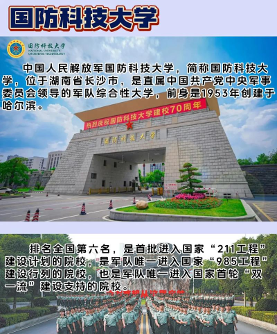 中国人民解放军国防科技大学,简称国防科大,正军级,本部位于中国湖南省长沙市,是中央军事委员会直属的综合性大学。