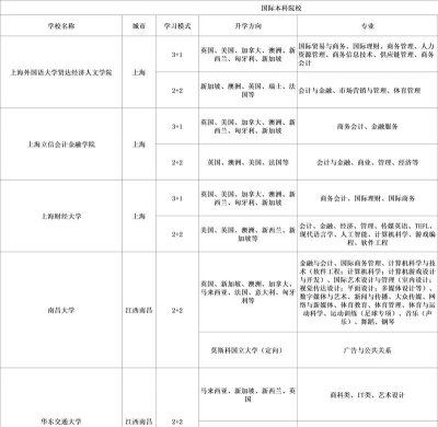 国际本科学校有哪些专业:国际贸易专业、国际金融专业、工商管理专业、商业管理专业、艺术设计专业、传媒专业、音乐专业、工商管理专业、财务管理专业、学前教育专业、汉语言文学专业、视觉传达设计专业、计算机科学与技术专业等等。