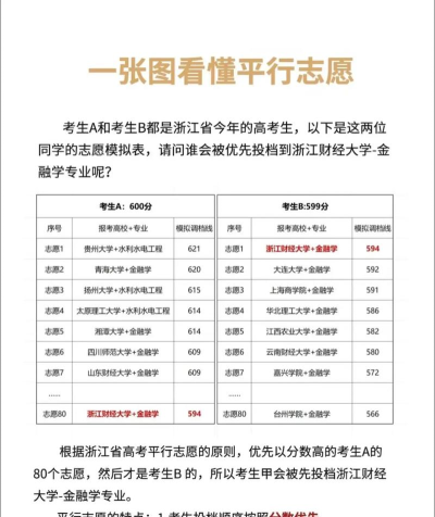 院校志愿之间要有一定的梯度。既要考虑“冲一冲”,填报有希望够得着的理想学校,也要考虑“稳一稳”,填报与自己成绩“门当户对”的学校,更要 考虑 “保一保”,填报比自己成绩稍低点的学校,不要全部填报同一层次的院校。