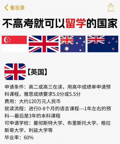 总的来说,不高考直接去留学需要提前做好规划,准备好语言成绩和平均成绩,并根据所申请的国家和院校的具体要求进行相应的准备。