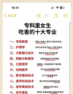 女生最吃香的十大专业:护理学专业、播音主持专业、学前教育专业、会计专业、计算机专业、航空服务专业、英语专业、视觉传达设计专业、人力资源管理专业、旅游管理专业、室内设计专业。
