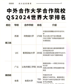 杭州师范大学哈尔科夫学院、温州医科大学阿尔伯塔学院、浙江工商大学萨塞克斯人工智能学院、中国美术学院南特设计联合学院、北京航空航天大学中法航空学院、浙江师范大学堪萨斯大学联合教育学院:这些学院提供了多样化的艺术与科学合作办学项目,涵盖了从本科到硕士的多个专业。