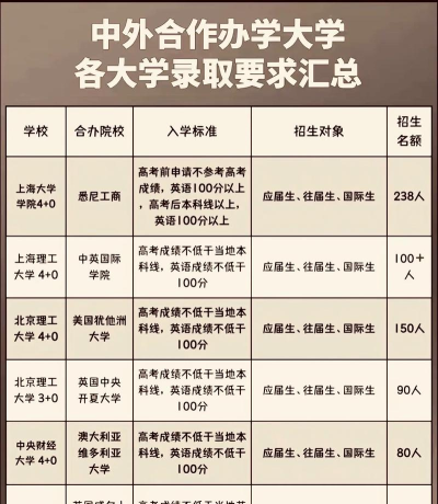 中外合作办学并不一定要求学生出国留学。这种办学模式提供了多种选择,包括但不限于“2+2”、“3+1”和“4+0”等模式。其中,“2+2”和“3+1”模式允许学生在国内学习一定年限后,前往国外合作大学完成剩余学业。而“4+0”模式则是指学生可以在国内完成全部学业,无需出国即可获得国外合作大学的学位证书。