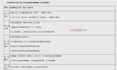 北外日本留学预科班项目,对接东京大学、京都大学等百余日本所知名院校,日语零基础也能进入日本名校学习,只要满足高中毕业的学历即可报名,招生专业基本不受限制,可申请日本院校所有专业。