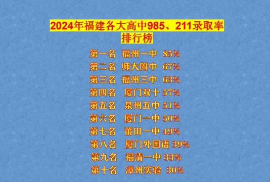 2024年福建高考共有24.7万考生参加高考,预测福建985大学录取率为2%,大概会有4940多人被985大学录取。