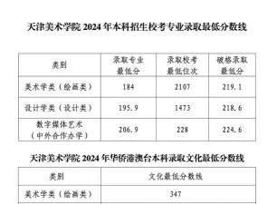 天津2024艺术类本科批统考院校录取最低分是多少(音乐类)