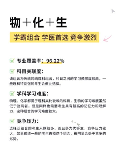 物理+化学+生物:这个组合的专业覆盖率高达96.36%,适合对医学、计算机科学等领域感兴趣的学生。这个组合需要较强的逻辑思维和运算能力,但学科之间的关联度高,学习时可以互相促进。