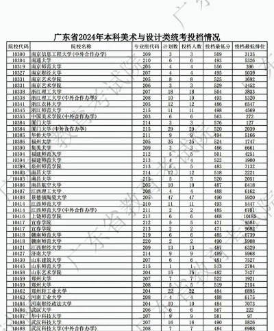 广东省2024年本科美术与设计类统考第二次征集志愿投档情况: