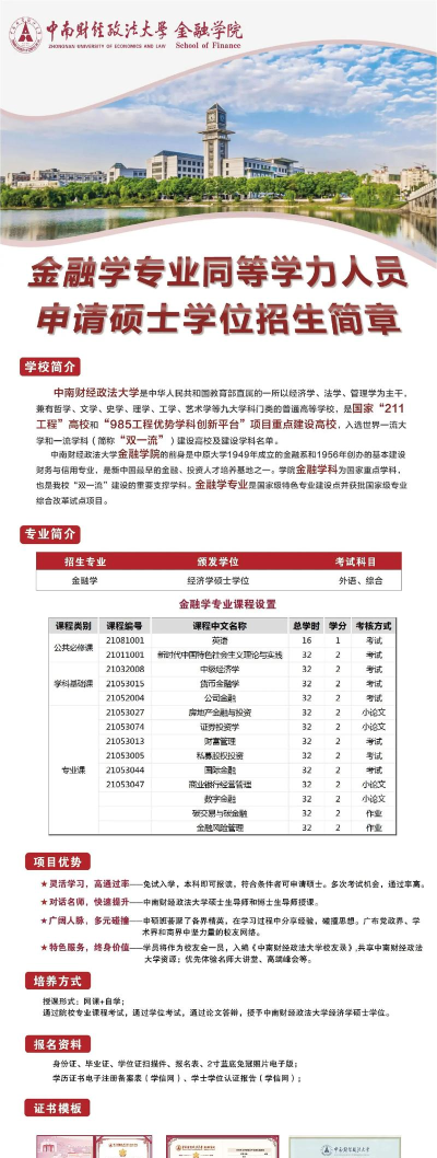 中南财经政法大学同等学力申硕(在职研究生)招生简章