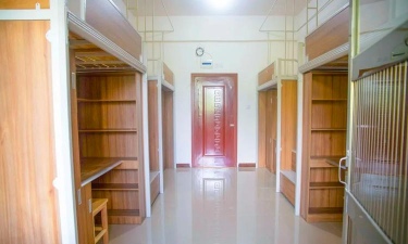 8人间,有独立的卫浴,独立阳台,有空调、直饮水热水器、每幢楼的负一层都有公共浴室、热水房、商铺。在宿舍内还安装了电话、网络接口、鞋架、毛巾架等。宿舍打水、洗澡都很方便,只要办一张一卡通,在学校里走到哪都不怕。