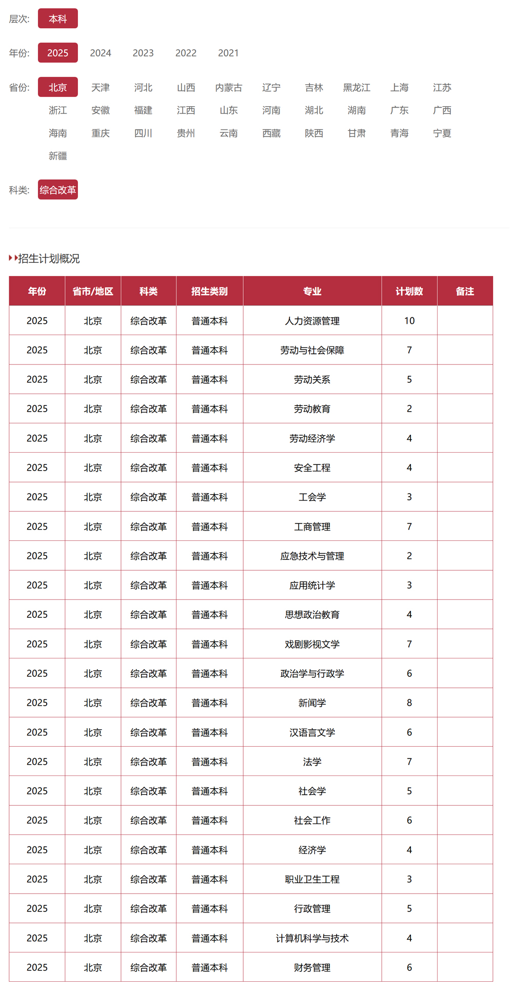 首页 教育资讯 中国劳动关系学院2025年招生计划