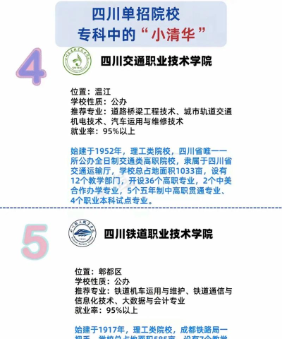 四川建筑职业技术学院是一所建筑类专科学校,其专业设置非常实用,涵盖了建筑工程、城市规划、建筑设计等领域。该校的毕业生在四川省的建筑行业有着很高的声誉,而且薪资水平也相对较高。
