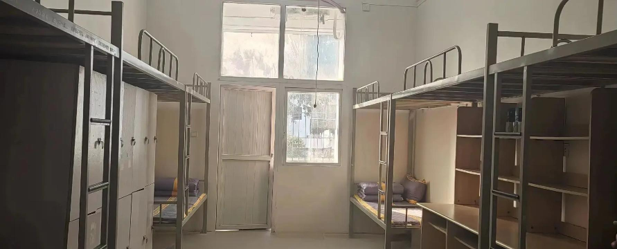 八人一间,上下铺。风扇齐全,有露台,方便晾衣服。周边绿树成荫,冬暖夏凉。有网线,可以上网。