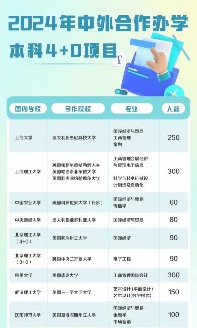 2024年中国人民大学的联合办学项目为学生提供了申请多所国外知名高校的机会。根据公开发布的信息,这些项目涵盖了多个学科领域,并与多个国家和地区的大学建立了合作关系。以下是一些可以申请的国外高校示例: