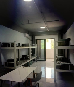 学校宿舍为6-8人一间上下床,书桌、储物柜,空调、热水器、独立卫生间、洗漱台。