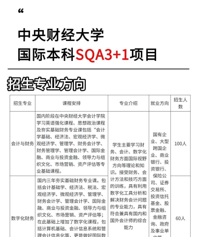 中央财经大学的3+1项目具有多项优势,包括高质量的教育资源、灵活的学习模式、国际认可的学历、优秀的师资团队等,这些优势使得该项目成为一个非常不错的选择。