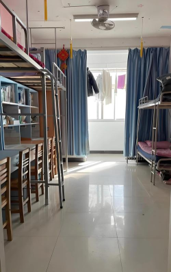 设有卫生间、阳台、洗澡间、风扇、衣柜、热水器、洗衣机,住宿条件不错,给学生提供了一个舒适、安全的学习和生活环境。