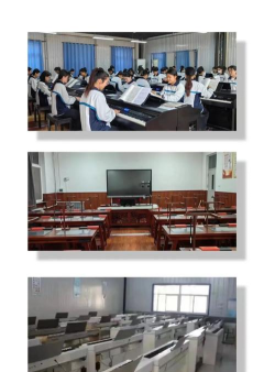 每个教室有:数码钢琴、电子白板、电脑、音响等设施设备,为教学、技能训练提供了便捷;