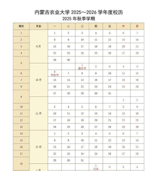 内蒙古大学:寒假时间为2025年1月8日至2月18日,共6周。