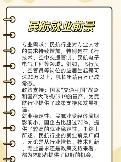 随着航空技术的不断进步和航空市场的持续扩大,民航业将为毕业生提供更多、更好的就业机会。