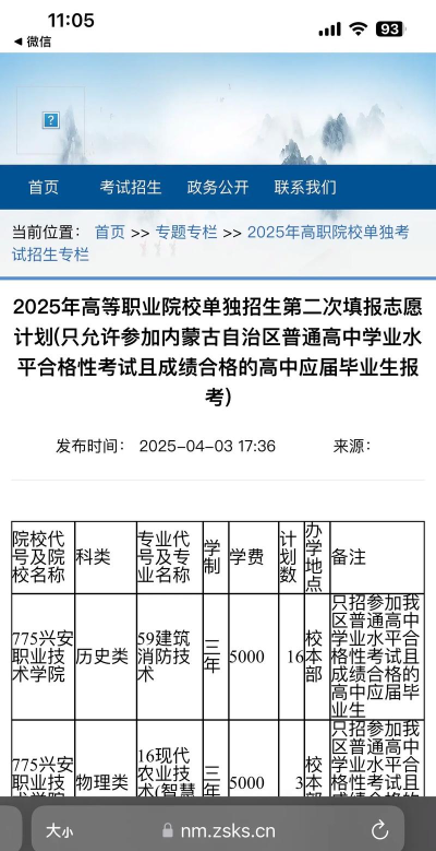 关注单招信息:考生在完成高考报名后,应密切关注内蒙古招生考试信息网发布的单招报名信息。包括招生院校、招生专业、考试科目、招生人数等。