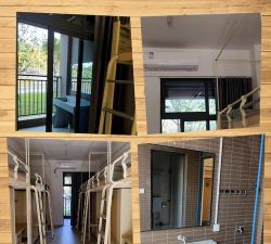 学院宿舍分为双人间、四人间,双人间有点高级哦,基本上是应有尽有。每个宿舍有单独卫生间、有洗衣服的台子、有挂衣服的杠、自己买晾衣服的杆,可以洗澡、有热水。