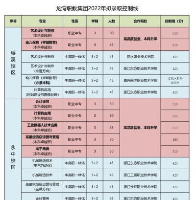 瑶溪校区:艺术设计与制作(美术创新实验班)、计算机应用(网站建设与图像处理)、计算机应用〔物联网技术)、幼儿保育〔学前教育)、艺术设计与制作、艺术设计与制作〔非遗方向)