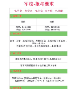 报考军校对身体素质有严格要求。男生身高要达到162厘米以上,女生身高要达到158厘米以上。在视力方面,要求也较为严格。如果报考军队技术类院校,也称非指挥类院校,裸眼视力要达到4.6以上;报考军队指挥类院校裸眼视力要达到5.0以上。