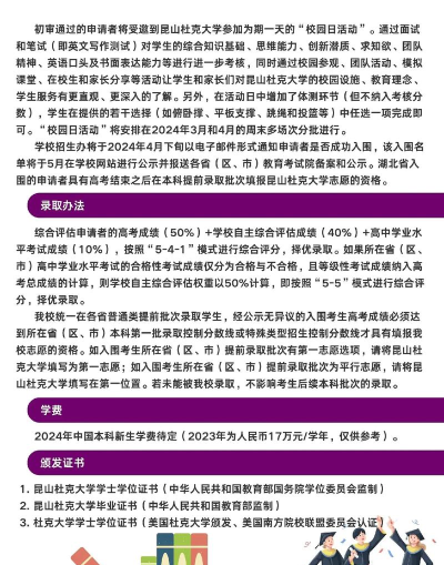 申请材料:高中成绩单、三封推荐信、英语水平证明、申请论文、85美元申请费。
