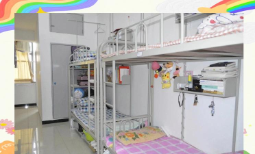学校的宿舍条件是非常好的,依然是上下床,但是每个人都有独立的衣柜和书桌,非常的方便,而且宿舍非常的宽敞,空调淋雨暖气都为学生提供,还不限制水电,是不是应该给学校一个赞。