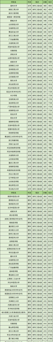 430分到470分陕西:有甘肃中医药大学、楚雄师范学院、安阳师范学院等公办二本大学。这些院校在医学、师范等领域有着较高的教学水平。陕西理科:有榆林学院(国际创意学院)、湖南城市学院、锦州医科大学等公办二本大学。