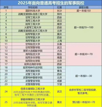 2025各军校无军籍招生专业盘点